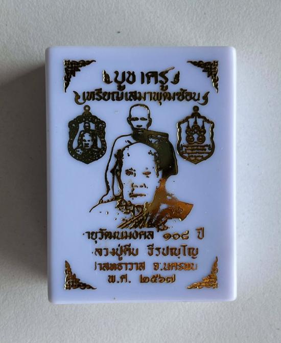 หลวงปู่คีบ ธีรปัญโญ วัดป่าสุทธาวาส จ.นครพนม เหรียญเสมาพุฒซ้อน บูชาครู รายการนำฤกษ์ แพคคู่ 2 เหรียญ กล่องครบ