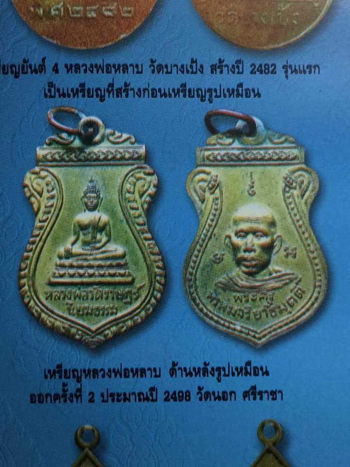 เหรียญหลวงพ่อหลาบ วัดบางเป้ง ออกวัดราษฎร์นิยมธรรม เนื้อทองแดงกะไหล่ทอง ปี2499 จ.ชลบุรี