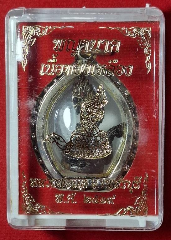 รูปหล่อพญานาค หลวงพ่อแล วัดพระทรง จ.เพชรบุรี ปี2519 (เลี่ยมเดิม กล่องเดิม สภาพสวย หายาก นิยม บันดาลโชคลาภ เมตตาค้าขาย) |