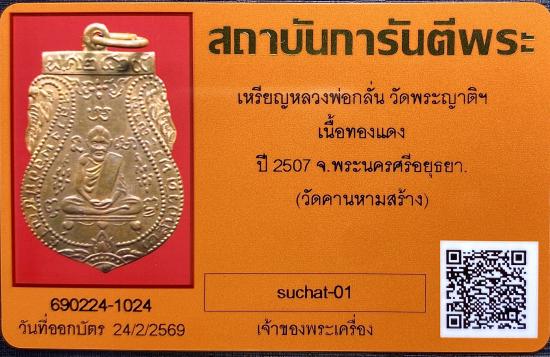 เหรียญหลวงพ่อกลั่น วัดพระญาติฯ เนื้อทองแดง ปี 2507 จ.พระนครศีอยุธยา วัดคานหามสร้าง