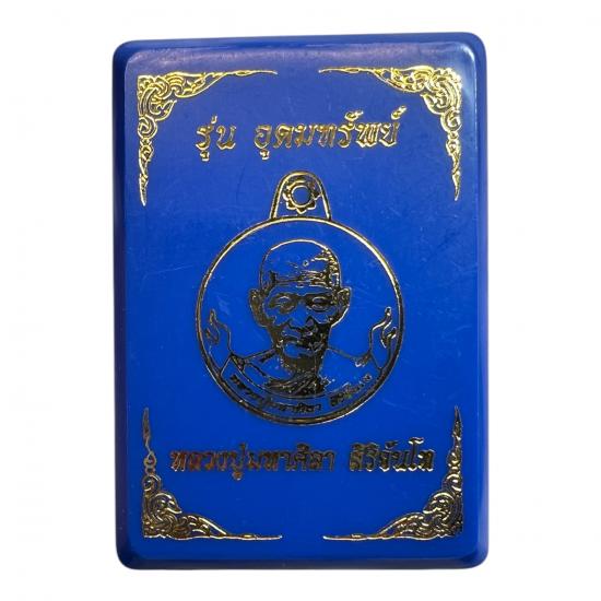 เหรียญอุดมทรัพย์ หลวงปู่มหาศิลา สิริจันโท ปี๖๔ วัดโพธิ์ศรีสะอาด สวนสงฆ์แกแปะ จังหวัดกาฬสินธุ์ เนื้อทองแดงรมดำ ตอกโค๊ต ชัดเจน เหรียญเลข 756 |