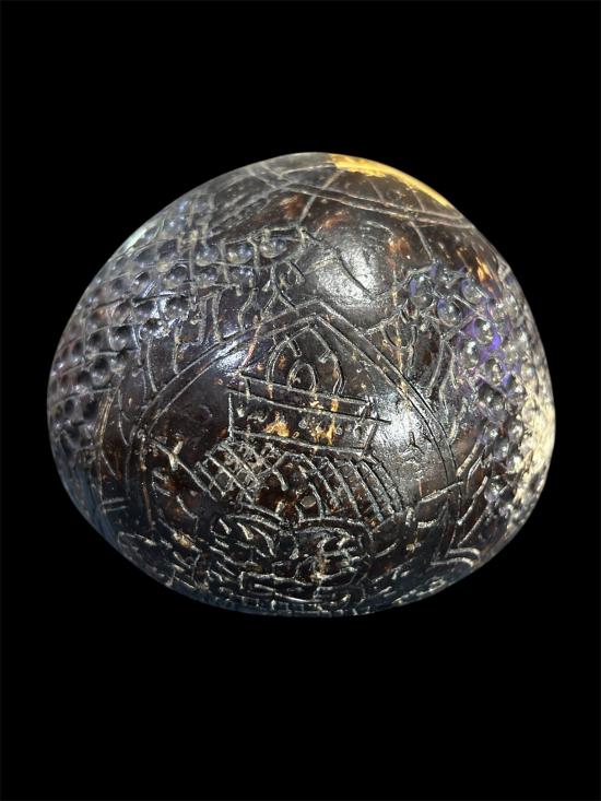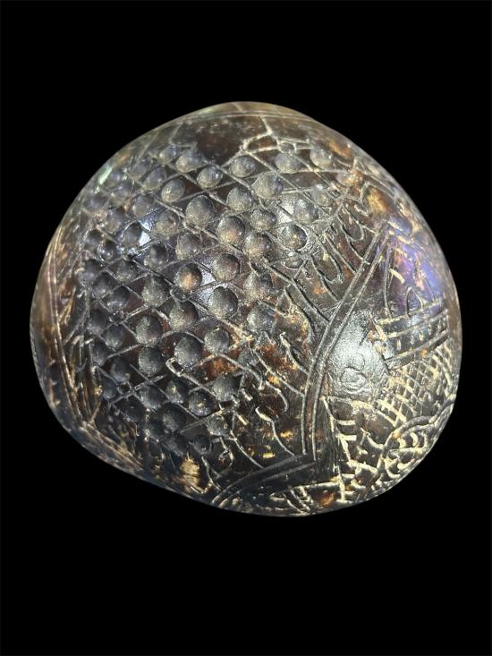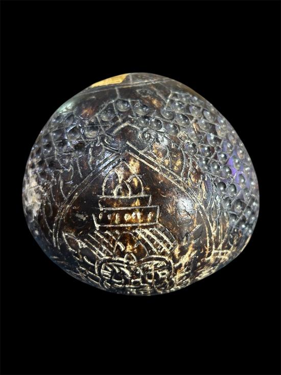 วัดใจ..100 กะลาตาเดียว แกะพระราหูเก่า มีเม็ดกริ่งด้านใน เส้นผ่าศูนย์กลางประมาณ 4 นิ้วกว่า