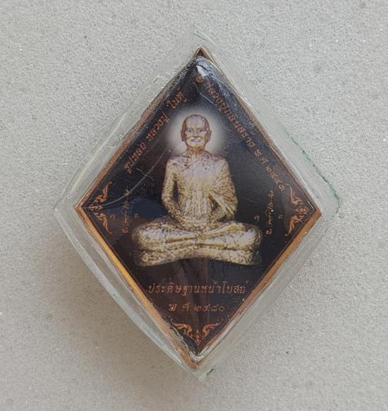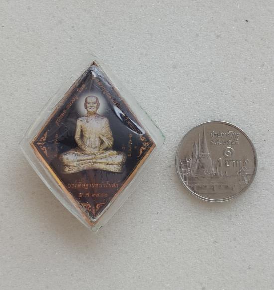 รูปถ่ายล็อกเก็ตข้าวหลามตัด หลวงปู่เอี่ยม หลังรูปเหมือนหน้าโบสถ์ วัดสะพานสูง จ.นนทบุรี ปี 2552