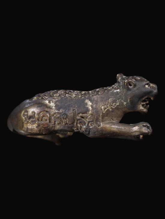 เสือหมอบ รุ่น 1 หลวงพ่อเปิ่น วัดบางพระ จ.นครปฐม เนื้อนวะโลหะแก่เงิน ปี 35 มีรอยจารที่คอ พร้อมกล่องเดิมๆ |