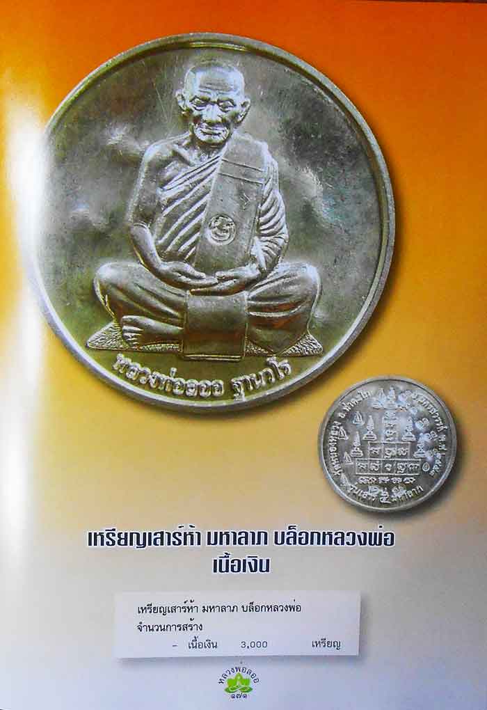 รายละเอียด เหรียญเสาร์ 5 มหาลาภ เนื้อเงิน หลวงพ่อลออ ฐานวโร วัดหนองหลวง อ.ท่าตะโก จ.นครสวรรค์ ปี 2553 มีจาร ตอก 4 โค๊ต