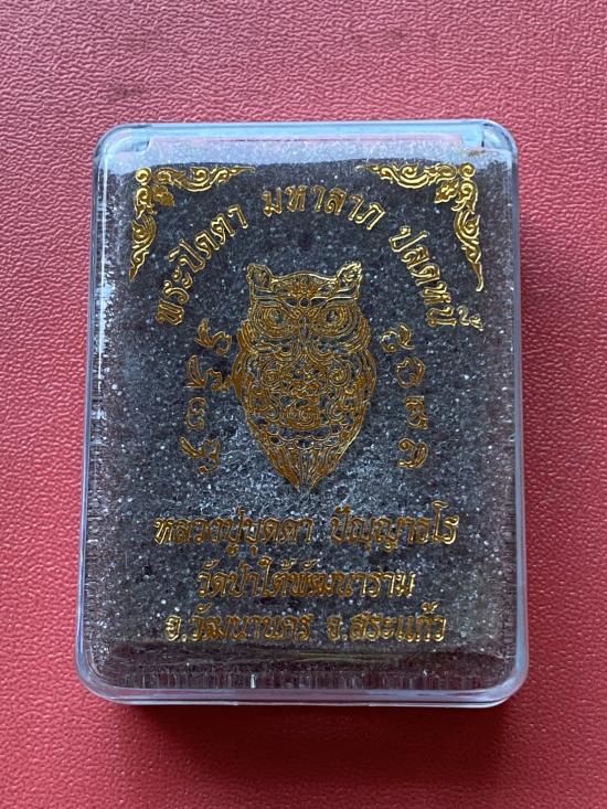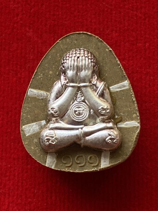 เคาะเดียวแดง หลวงปู่บุดดารุ่น ปิดตามหาลาภปลดหนี้ เนื้อผง ตะกรุดเงินล้อมหน้ากากเงิน หน้าหลัง |