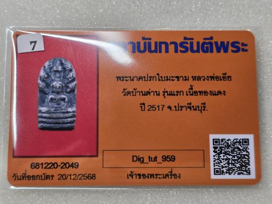 เคาะเดียวแดง พระนาคปรกใบมะขาม หลวงพ่อเอีย วัดบ้านด่าน รุ่นแรก เนื้อทองแดง ปี 2517 พร้อมบัตรรับรองยังมีพระเครื่องสวยๆอีกหลายรายการ กดดูที่ฆ้อนได้เลยครับ
