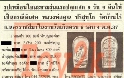 หลวงพ่อคูณปลุกเสกให้เป็นกรณีพิเศษ ๙วัน๙คืนครับ (หายากครับ)