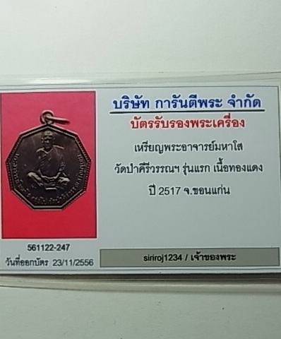 | ชื่อพระเครื่อง | วัดใจ_ (ของแท้)เหรียญรุ่นแรก หลวงพ่อมหาโส วัดป่าคีรีวรรณอรัญญเขต ปี 2517 จ.ขอนแก่น (ขอเชิญครับ) |