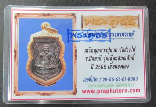 สวยแชมป์โลก...... เหรียญเลื่อนสมณศักดิ์ หลวงปู่ทวด วัดช้างไห้ ( เสือคาบดาบ ) ปี 2508 เนื้อทองแดงรมดำ + บัตรเพื่อนบ้าน............