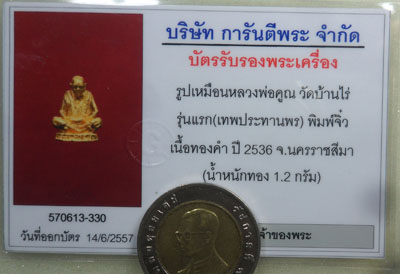 รูปหล่อหลวงพ่อคูณ รุ่นเทพประทานพร เนื้อทองคำ พิมพ์จิ๋ว พร้อมบัตรG