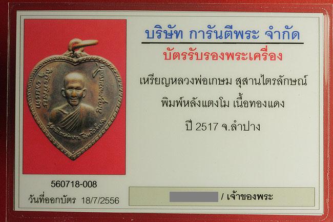 | ชื่อพระเครื่อง | เหรียญหลวงพ่อเกษม สุสานไตรลักษณ์ พิมพ์หลังแตงโม จ.ลำปาง..ปี2517...เนื้อทองแดง...***..มีบัตร G..*** |