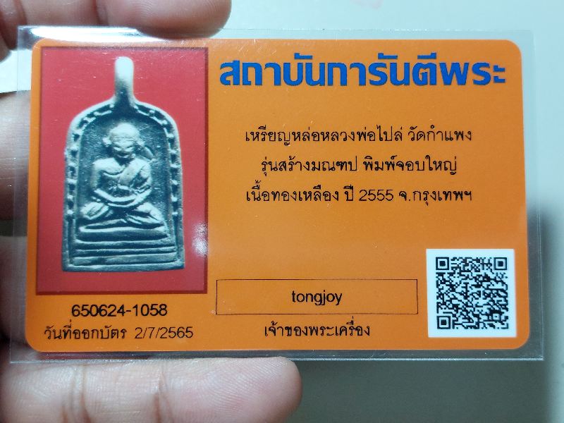 หลวงพ่อไปล่ จอบ3 เนื้อฆ้อง พร้อมบัตร