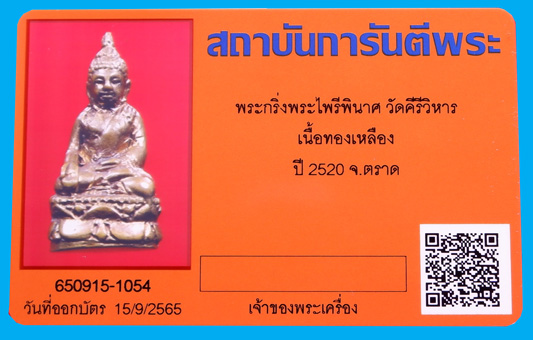 | รายละเอียด | พระกริ่งไพรีพินาศ วัดบวรฯ (กฐินสามัคคี วัดคีรีวิหาร) เนื้อทองเหลือง ปี 2520 ผิวน้ำทองสวยๆ + บัตรรับรอง GPra