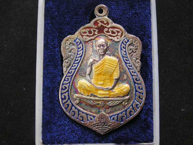 เหรียญเสมาวัดปรก เนื้อเงินลงยา สภาพสวยเดิมๆ
