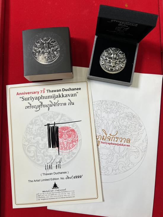 เหรียญสุริยะภูมิจักรวาล เนื้อเงิน ท่านอาจารย์ถวัล ดัชนี อุปกรณ์ครบครับ