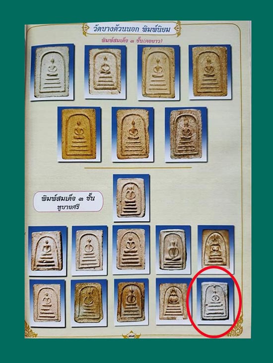 | รายละเอียด | พระชุดวัดบางด้วน สมุทรปราการ พิธีใหญ่ปี 2493 หลวงปู่เผือก วัดกิ่งแก้ว ปลุกเสก ซึ่งนักสะสมอาจจะเข้าใจว่าเป็นพระสมเด็จหลวงปู่หินหรือหลวงปู่นาค วัดระฆัง กรุงเทพฯ ก็ได้นะครับ ก็เพราะว่าเนื้อหามวลสารเหมือนกันทุกประการ ซึ่งอาจได้รับอิทธิพลและรูปแบบสุกุลช่างหรืออาจจะเป็นผู้แกะแบบพิมพ์คนเดียวกันก็เป็นได้