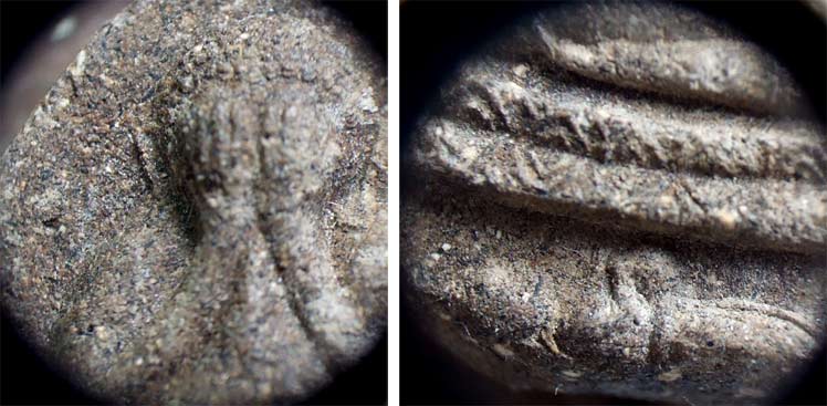 ของแท้ต้องแบบนี้ สีกระด่างกระดำ แห้งร่วน พิมพ์ชัดยันต์ลึก มีสองเนื้อครับเนื้อว่านดอกทองกับ เนื้อผงพราย ผสมว่าน แจ่มครับแรงจริง ถ้าเซ่นถูกวิธี
