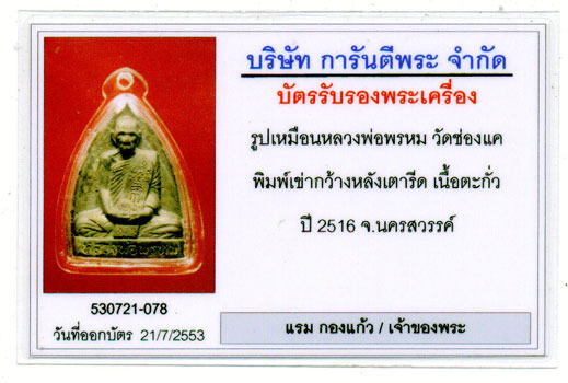 | ชื่อพระเครื่อง | 1 เดียวที่จีพระออกบัตรให้ครับเตารีดตะกั่ว |