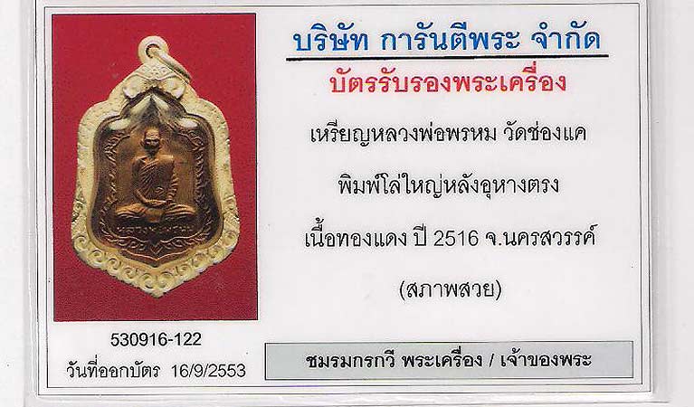 เหรียญโล่ใหญ่ หลวงพ่อพรหม เนื้อทองแดง ปี 2516 บล็อกอุตรง