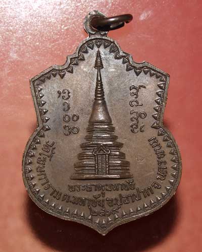 เหรียญสองพระธาตุ พระธาตุพนม และพระธาตุมหาชัย หลวงปู่คำพันธ์ วัดโฆษการาม อ.ปลาปาก จ.นครพนม ปี 2519 สภาพสวยๆ