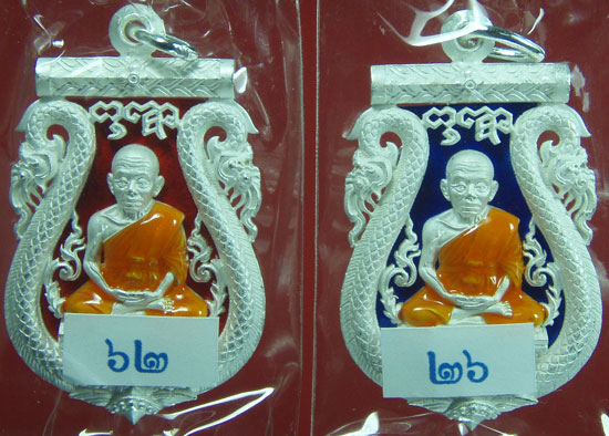 เหรียญเสมาฉลุเลื่อนสมณศักดิ์ เงิน ลงยาแดง&น้ำเงิน เคาะเดียว