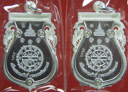 เหรียญเสมาฉลุเลื่อนสมณศักดิ์ เงิน ลงยาแดง&น้ำเงิน เคาะเดียว