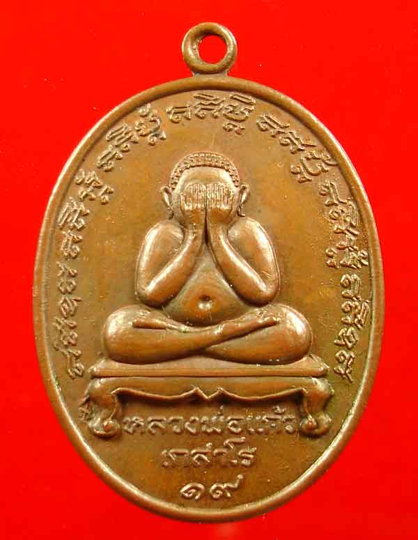 เหรียญพระปิดตา หลวงพ่อแก้ว วัดระหารไร่ เนื้อทองแดง ปี.2519 ตอกโค๊ต 95 มีจาร 3 จุด