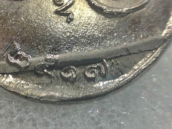 ด้านหลังมีคราบอะไรบ้างอย่างติดตรง 2517 เป็นเส้นตรงน่าจะเป็นตอนที่ชุบนิเกิ้ลมีคราบสรกปรกเลยติดมา พระไม่ได้แตกรานนะครับสวยสมบูรณ์นิเกิ้ลเต็ม ใครมีวิธีเขี่ยหรือเช็ดออกก็ลองดู รับประกันตามกฎ