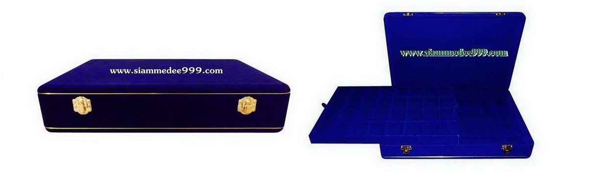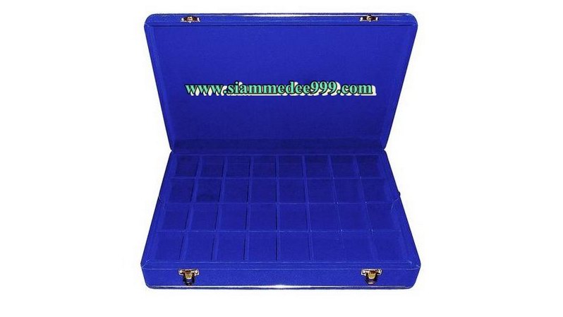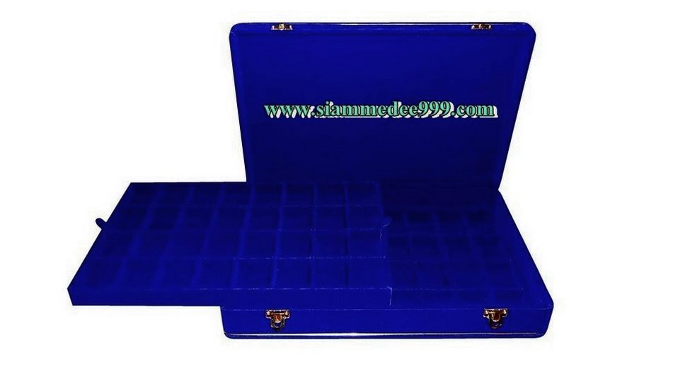 กล่องใส่พระ บุกำมะหยี่สีน้ำเงิน 64 ช่อง