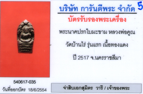 ปรกใบมะขามรุ่นแรก ปี 2517 เนื้อทองแดง + บัตร 035