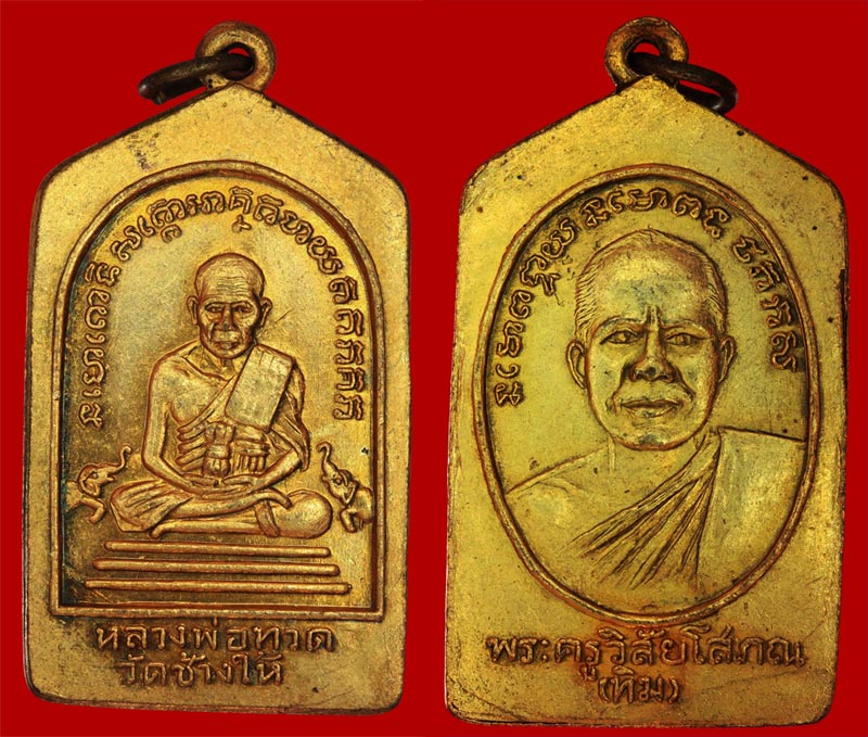 เหรียญหลวงปู่ทวด พิมพ์ห้าเหลี่ยม ปี2508 พิมพ์นิยม สภาพสวยมาก เดิมสุดๆ มาแบบ two tone ด้านหน้าเก็บแบบเปิดผิวเงาใส ด้านหลังเก็บแบบปิด สีกะหลั่ยเดิมๆ ไม่มีการสังเคราะห์แสงใดๆ องค์นี้เดิมใส่ตลับปิดหลังมาครับสีเลยออกทูโทน สวยแช้มป์ครับองค์นี้