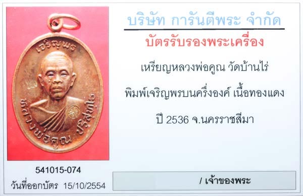 เหรียญเจริญพรบน หลวงพ่อคูณ เนื้อทองแดง สวยมาก
