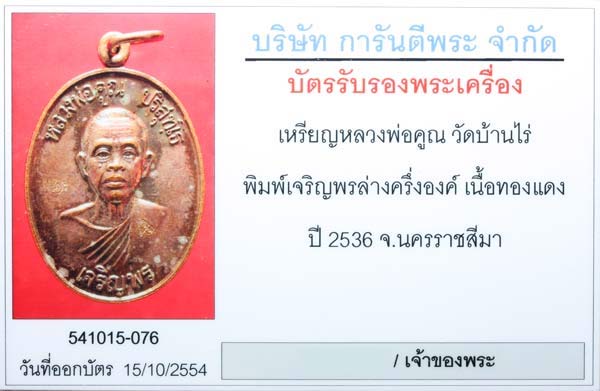เหรียญเจริญพรล่าง หลวงพ่อคูณ เนื้อทองแดง สวยมาก