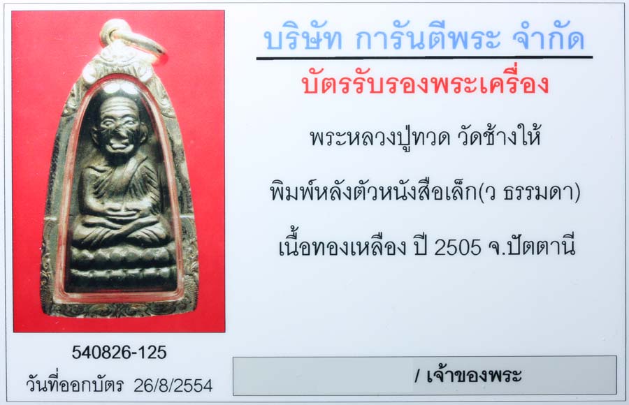 หลวงปู่ทวด หลังหนังสือเล็ก ปี05 ผิวสวยมาก