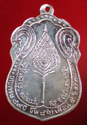 เหรียญเสมาหลังพัดยศ ลป.โต๊ะ ปี18(มีคราบน้ำทอง)