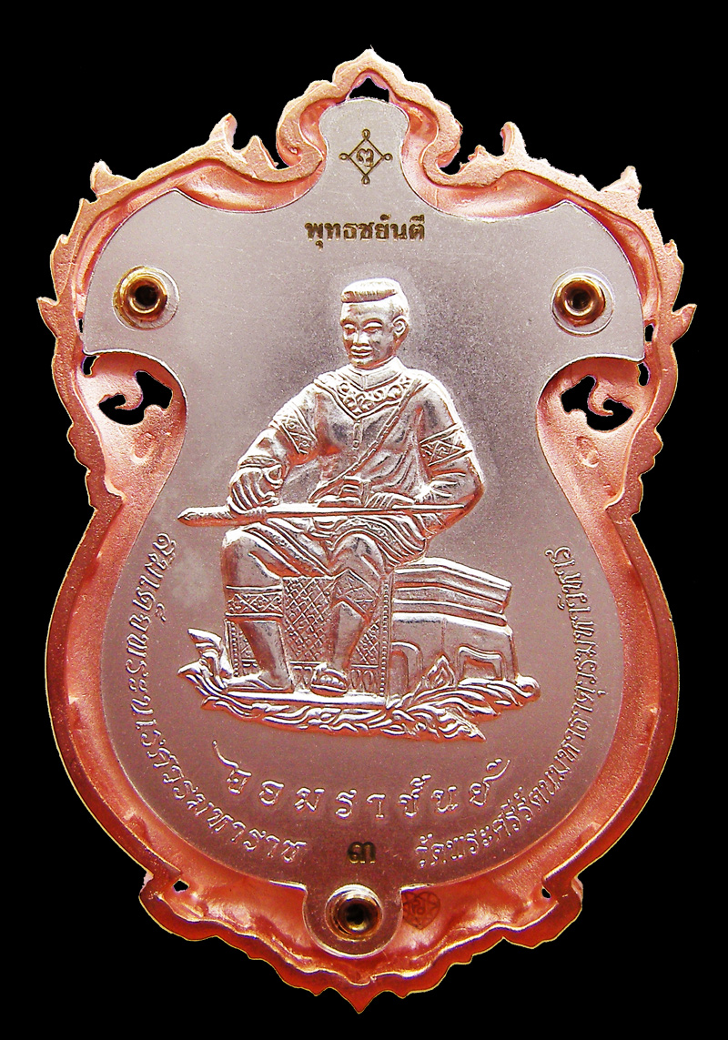 ...จากพระพุทธรูปที่ได้รับขนานนามว่า...งามที่สุดในแผ่นดิน...สู่ผลงานอันล้ำค่าน่าสะสม...ลึกซึ้งถึงศาสตร์...อนุรักษ์ความขลัง...นวัตกรรมแห่งพุทธศิลป์...มาเป็นเหรียญหล่อฉลุ 4 มิติ พระพุทธชินราช รุ่น "จอมราชันย์ ".. ..พระพุทธชินราช เป็น"จอมราชันย์"ในทางธรรม... ..สมเด็จพระนเรศวรมหาราชเป็น"จอมราชันย์"ในทางโลก...เป็นพระราชาผู้เหนือกว่าพระราชาทั้งปวงจึงเฉลิมสมัญญานามว่า.." จอมราชันย์ "....และในเหรียญรุ่นนี้ได้นำพระพุทธชินราชมาไว้ที่ด้านหน้าของเหรียญและได้นำสมเด็จพระนเรศวรมหาราชมาไว้ที่ด้านหลังของเหรียญ...ซึ่งทั้ง2ถือเป็นมงคลสูงสุด เป็นที่เคารพศรัทธาของคนไทยทั้งชาติจึงเป็นการที่เหมาะสมและสมควรเรียกรุ่นนี้ว่ารุ่น"จอมราชันย์".... ในภาพเป็นเหรียญฉลุพระพุทธชิราช"จอมราชันย์" เนื้อบรอนซ์นอก....องค์นี้อยู่ในชุดกรรมการ"พุทธชยันตี"หมายเลข 3 ...ยิงเลเซอร์พุทธชยันตี ยันต์"พุท"และหมายเลขประจำองค์........พระรุ่นนี้เป็นรุ่นที่สวยงดงามมากๆรุ่นหนึ่งของพระพุทธชินราช เหมาะสำหรับเก็บไว้เป็นมรดกแก่ลูกหลาน พระสวย พิธีดีเยี่ยม พุทธคุณ+พุทธศิลป์ สืบต่อไปเป็นตำนานครับพี่น้อง...