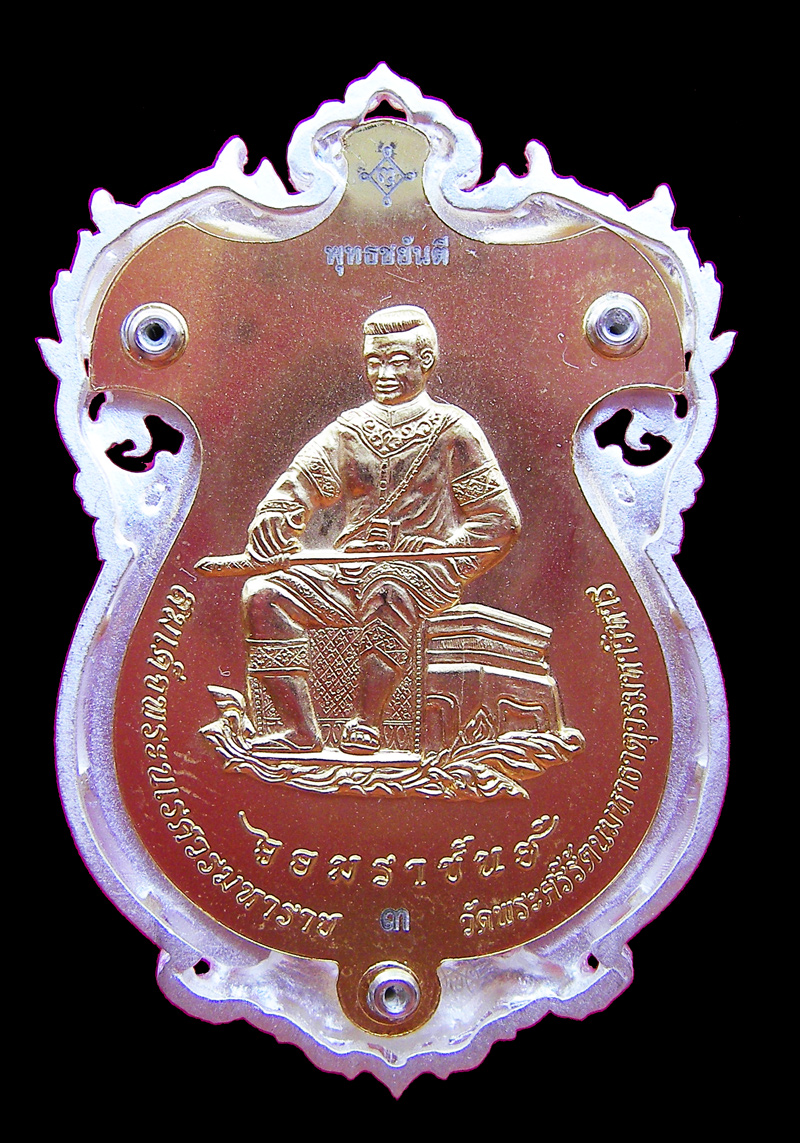 ...จากพระพุทธรูปที่ได้รับขนานนามว่า...งามที่สุดในแผ่นดิน...สู่ผลงานอันล้ำค่าน่าสะสม...ลึกซึ้งถึงศาสตร์...อนุรักษ์ความขลัง...นวัตกรรมแห่งพุทธศิลป์...มาเป็นเหรียญหล่อฉลุ 4 มิติ พระพุทธชินราช รุ่น "จอมราชันย์ ".. ..พระพุทธชินราช เป็น"จอมราชันย์"ในทางธรรม... ..สมเด็จพระนเรศวรมหาราชเป็น"จอมราชันย์"ในทางโลก...เป็นพระราชาผู้เหนือกว่าพระราชาทั้งปวงจึงเฉลิมสมัญญานามว่า.." จอมราชันย์ "....และในเหรียญรุ่นนี้ได้นำพระพุทธชินราชมาไว้ที่ด้านหน้าของเหรียญและได้นำสมเด็จพระนเรศวรมหาราชมาไว้ที่ด้านหลังของเหรียญ...ซึ่งทั้ง2ถือเป็นมงคลสูงสุด เป็นที่เคารพศรัทธาของคนไทยทั้งชาติจึงเป็นการที่เหมาะสมและสมควรเรียกรุ่นนี้ว่ารุ่น"จอมราชันย์".... ในภาพเป็นเหรียญฉลุพระพุทธชิราช"จอมราชันย์" เนื้อเงิน ลงยาสีเหลือง....องค์นี้อยู่ในชุดกรรมการ"พุทธชยันตี"หมายเลข 3 ...ยิงเลเซอร์พุทธชยันตี ยันต์"พุท"และหมายเลขประจำองค์........พระรุ่นนี้เป็นรุ่นที่สวยงดงามมากๆรุ่นหนึ่งของพระพุทธชินราช เหมาะสำหรับเก็บไว้เป็นมรดกแก่ลูกหลาน พระสวย พิธีดีเยี่ยม พุทธคุณ+พุทธศิลป์ สืบต่อไปเป็นตำนานครับพี่น้อง...
