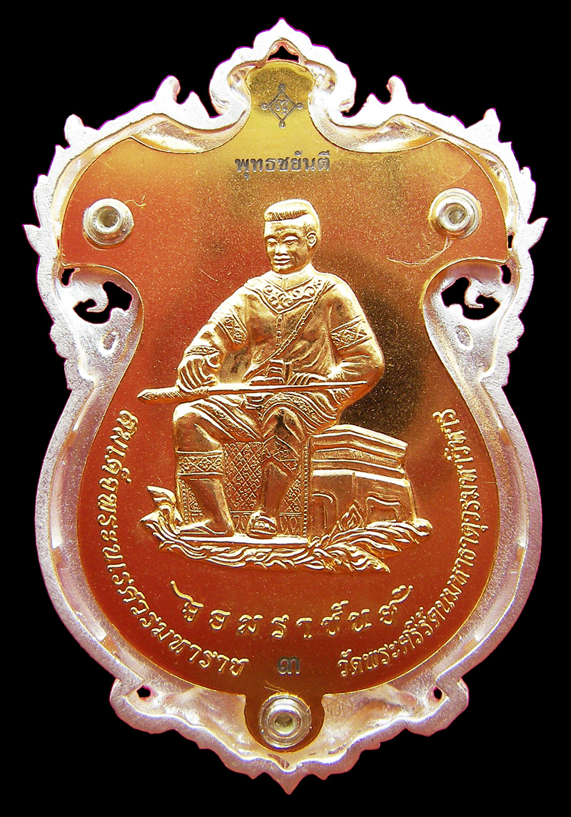 ...จากพระพุทธรูปที่ได้รับขนานนามว่า...งามที่สุดในแผ่นดิน...สู่ผลงานอันล้ำค่าน่าสะสม...ลึกซึ้งถึงศาสตร์...อนุรักษ์ความขลัง...นวัตกรรมแห่งพุทธศิลป์...มาเป็นเหรียญหล่อฉลุ 4 มิติ พระพุทธชินราช รุ่น "จอมราชันย์ ".. ..พระพุทธชินราช เป็น"จอมราชันย์"ในทางธรรม... ..สมเด็จพระนเรศวรมหาราชเป็น"จอมราชันย์"ในทางโลก...เป็นพระราชาผู้เหนือกว่าพระราชาทั้งปวงจึงเฉลิมสมัญญานามว่า.." จอมราชันย์ "....และในเหรียญรุ่นนี้ได้นำพระพุทธชินราชมาไว้ที่ด้านหน้าของเหรียญและได้นำสมเด็จพระนเรศวรมหาราชมาไว้ที่ด้านหลังของเหรียญ...ซึ่งทั้ง2ถือเป็นมงคลสูงสุด เป็นที่เคารพศรัทธาของคนไทยทั้งชาติจึงเป็นการที่เหมาะสมและสมควรเรียกรุ่นนี้ว่ารุ่น"จอมราชันย์".... ในภาพเป็นเหรียญฉลุพระพุทธชิราช"จอมราชันย์" เนื้อเงิน ลงยาสีน้ำเงิน..องค์นี้อยู่ในชุดกรรมการ"พุทธชยันตี"หมายเลข 3 ...ยิงเลเซอร์พุทธชยันตี ยันต์"พุท"และหมายเลขประจำองค์........พระรุ่นนี้เป็นรุ่นที่สวยงดงามมากๆรุ่นหนึ่งของพระพุทธชินราช เหมาะสำหรับเก็บไว้เป็นมรดกแก่ลูกหลาน พระสวย พิธีดีเยี่ยม พุทธคุณ+พุทธศิลป์ สืบต่อไปเป็นตำนานครับพี่น้อง...