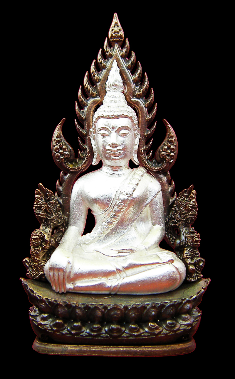 พระพุทธชินราชฉลุลอยองค์โลหะชุบเงินซุ้มนวะ999