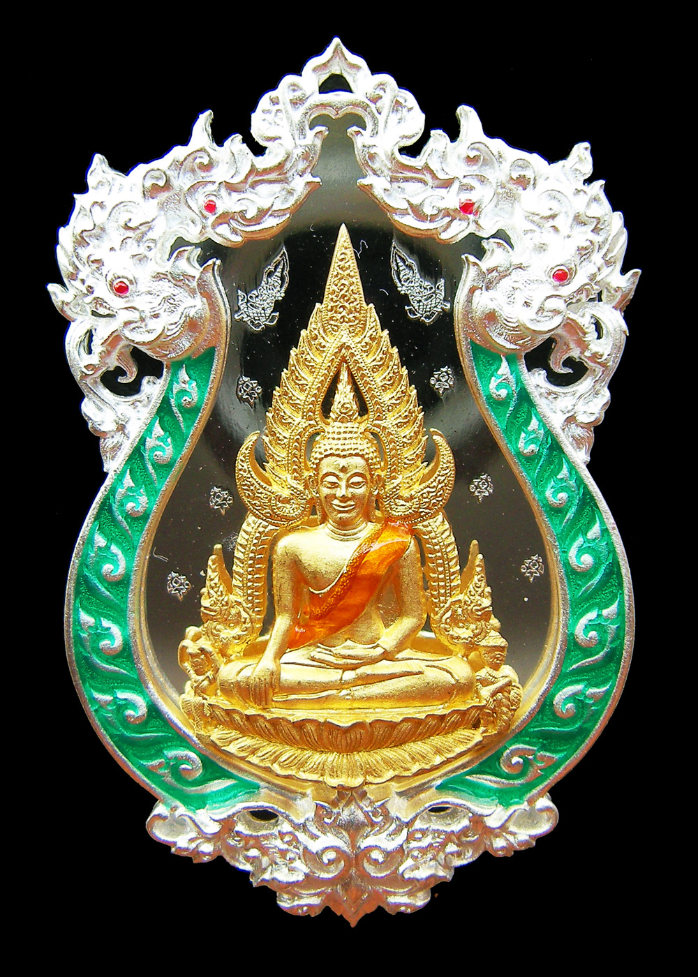 เหรียญฉลุพระพุทธชินราชเงินองค์ทองลงยาสีเขียวNo.๙๙