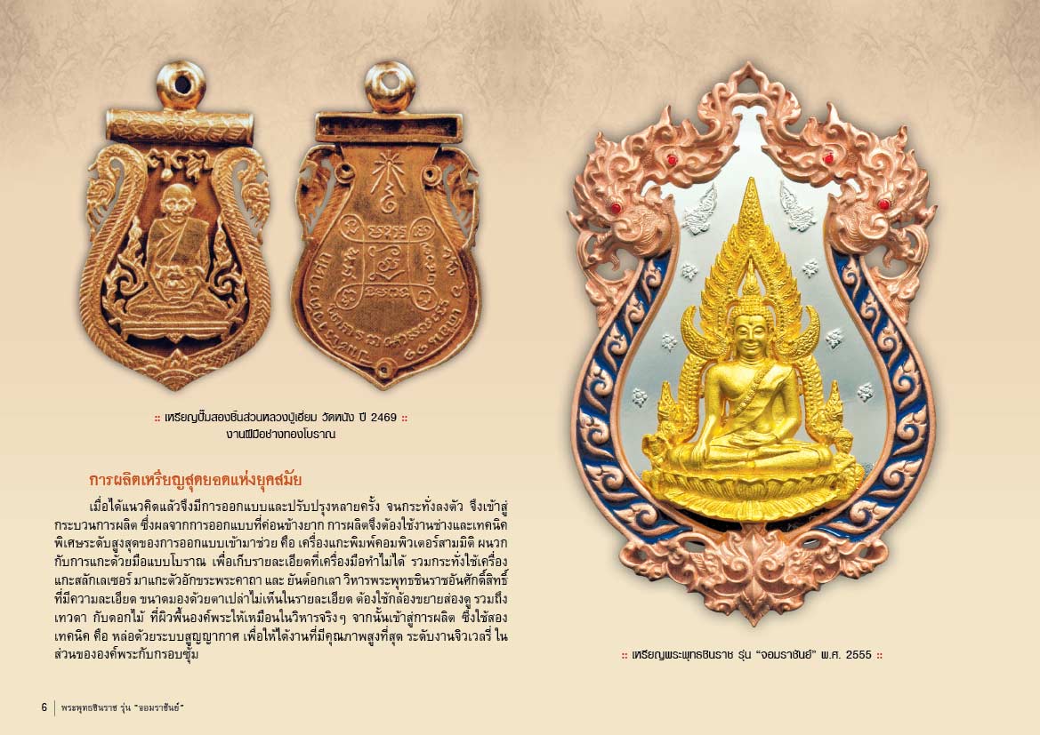 ...จากพระพุทธรูปที่ได้รับขนานนามว่า...งามที่สุดในแผ่นดิน...สู่ผลงานอันล้ำค่าน่าสะสม...ลึกซึ้งถึงศาสตร์...อนุรักษ์ความขลัง...นวัตกรรมแห่งพุทธศิลป์...มาเป็นเหรียญหล่อฉลุ 4 มิติ พระพุทธชินราช รุ่น "จอมราชันย์ ".. ..พระพุทธชินราช เป็น"จอมราชันย์"ในทางธรรม... ..สมเด็จพระนเรศวรมหาราชเป็น"จอมราชันย์"ในทางโลก...เป็นพระราชาผู้เหนือกว่าพระราชาทั้งปวงจึงเฉลิมสมัญญานามว่า.." จอมราชันย์ "....และในเหรียญรุ่นนี้ได้นำพระพุทธชินราชมาไว้ที่ด้านหน้าของเหรียญและได้นำสมเด็จพระนเรศวรมหาราชมาไว้ที่ด้านหลังของเหรียญ...ซึ่งทั้ง2ถือเป็นมงคลสูงสุด เป็นที่เคารพศรัทธาของคนไทยทั้งชาติจึงเป็นการที่เหมาะสมและสมควรเรียกรุ่นนี้ว่ารุ่น"จอมราชันย์".... ในภาพเป็นเหรียญฉลุพระพุทธชิราช"จอมราชันย์" เนื้อเงินองค์พระชุบทองลงยาราชาวดีสีเขียว... ...ยิงเลเซอร์หมายเลขประจำองค์..๙๙......พระรุ่นนี้เป็นรุ่นที่สวยงดงามมากๆรุ่นหนึ่งของพระพุทธชินราช เหมาะสำหรับเก็บไว้เป็นมรดกแก่ลูกหลาน พระสวย พิธีดีเยี่ยม พุทธคุณ+พุทธศิลป์ สืบต่อไปเป็นตำนานครับพี่น้อง...