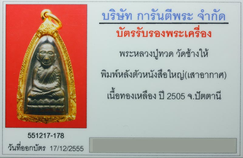 หลวงปู่ทวด พิมพ์หลังหนังสือใหญ่ เสาอากาศ ปี2505 พิธีใหญ่ยุคอาจารย์ทิม สภาพสวยเดิม สภาพนี้โชว์ได้ นำไปใช้ ไม่ผิดหวัง