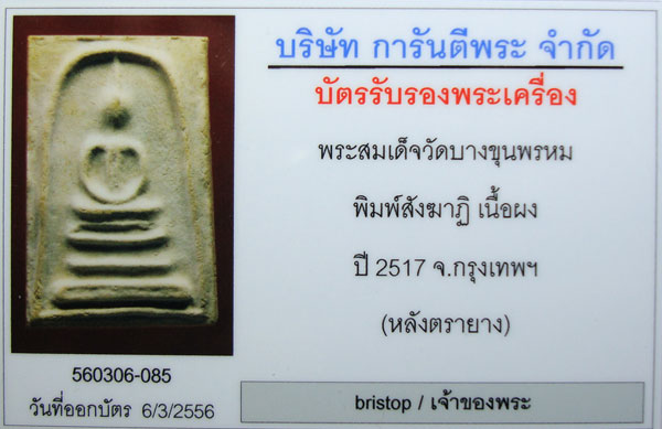 พระสมเด็จบางขุนพรหมปี๑๗ พิมพ์สังฆาฏิ บัตร