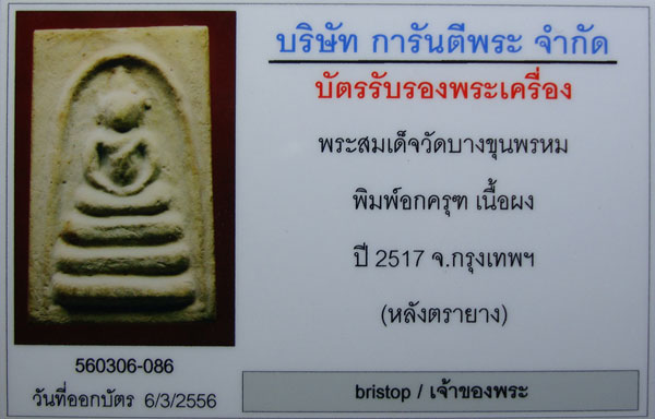 พระสมเด็จบางขุนพรหมปี๑๗ พิมพ์อกครุฑ บัตร
