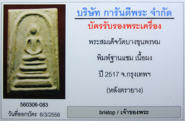 พระสมเด็จบางขุนพรหมปี๑๗ พิมพ์ฐานแซม บัตร