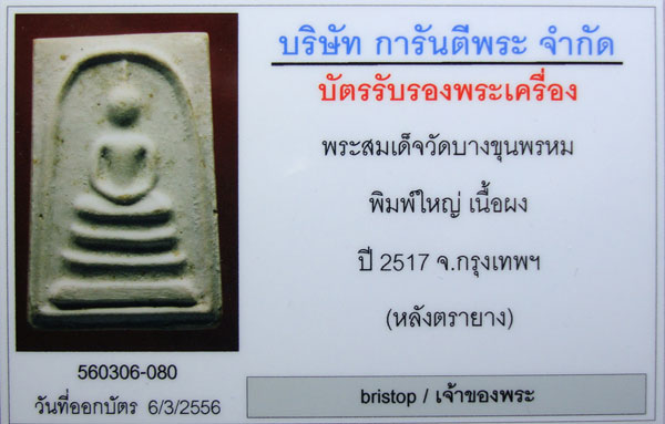 พระสมเด็จบางขุนพรหมปี๑๗ พิมพ์ใหญ่ บัตร