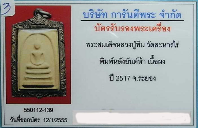 สมเด็จหลังยันต์ห้าหลวงปู่ทิม