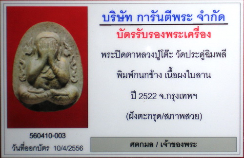 พระปิดตากนกข้างตะกรุดคู่ ลป.โต๊ะ ปี22(สวยมาก/ประมู
