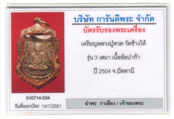 หลวงปู่ทวดรุ่นสาม บล็อคลึกเนื้อัลปาก้า เลี่ยมทอง สร้างในปี2504 นิยมในอันดับต้นๆของเนื้ออัลปาก้า รุ่นสาม หาสภาพที่สวยยากมาก องค์นี้สภาพสวย มาพร้อมบัตรรับรองครับ .